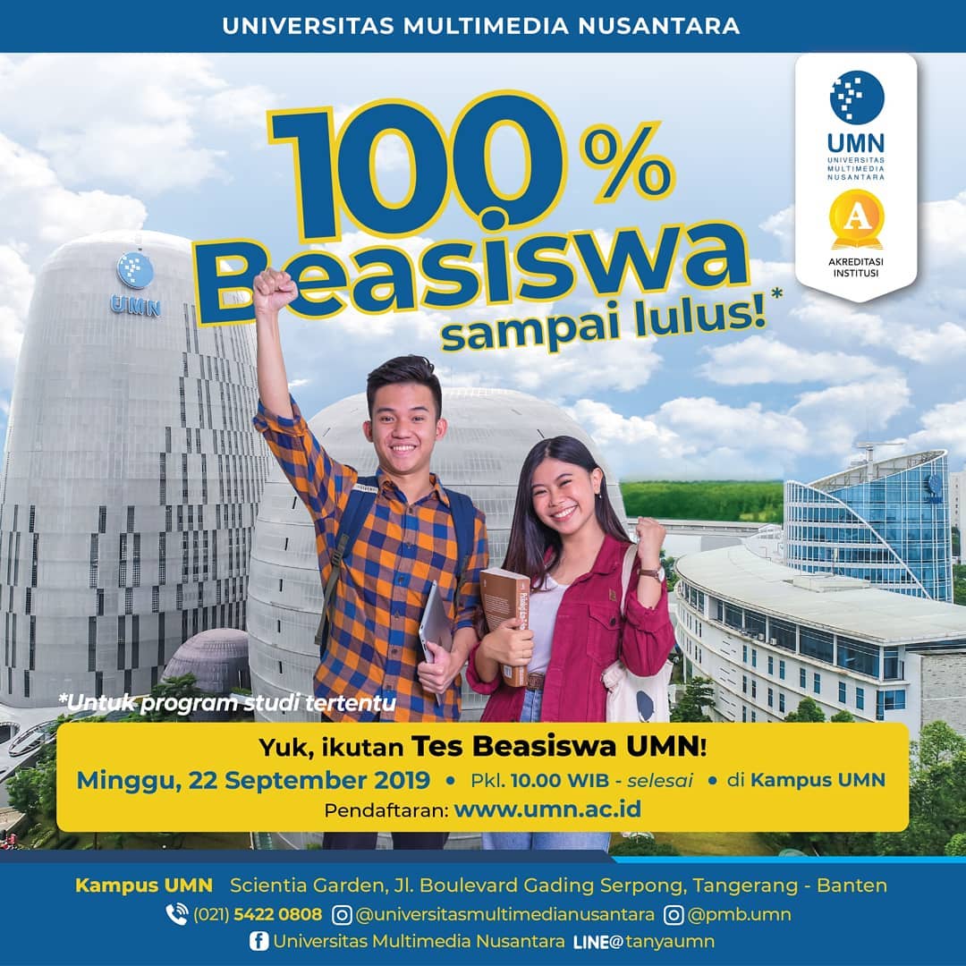 Btas akhir pendaftaran beasiswa dari Universitas Multimedia Nasional dibuka hingga tanggal 22 September 2019.