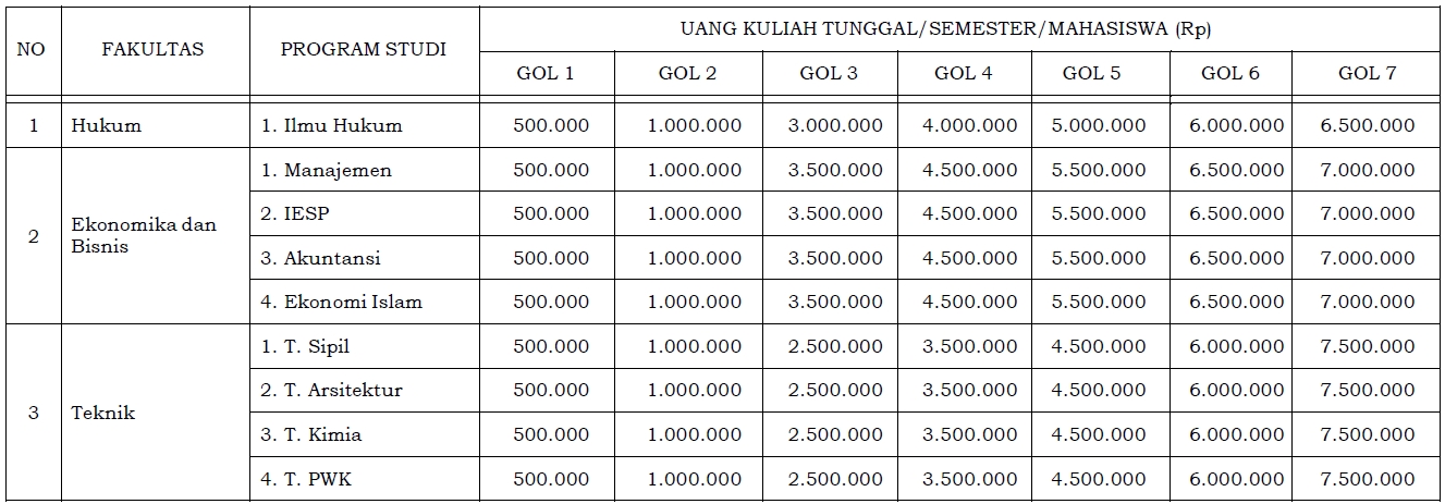 | 6 | S1 | Ilmu Hukum | 30.000.000 | 40.000.000 |