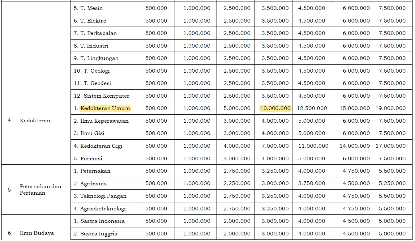| 1 | S1 | Kedokteran Umum | 100.000.000 | 150.000.000 |
