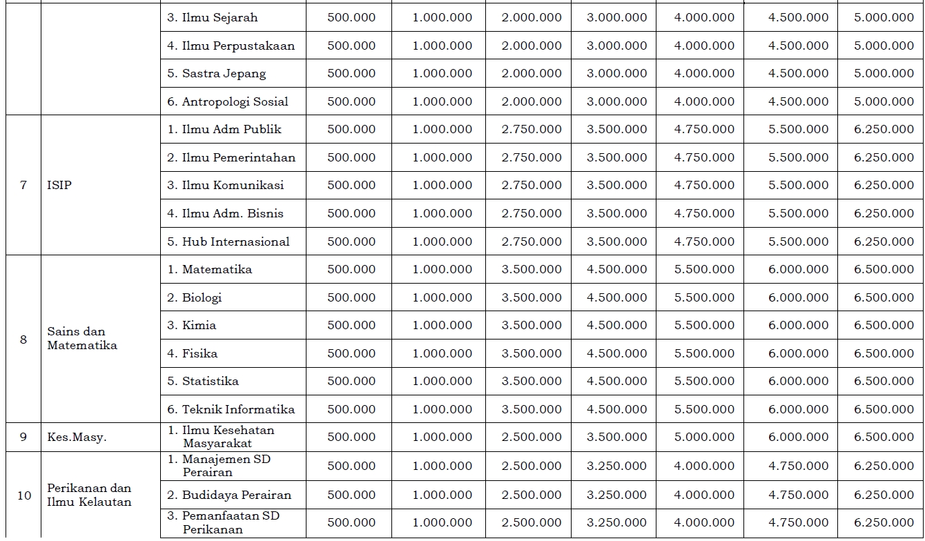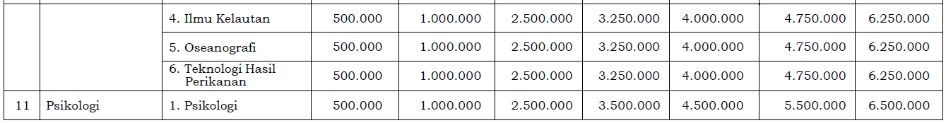 | 40 | S1 | Ilmu Kelautan | 10.000.000 | 15.000.000 |